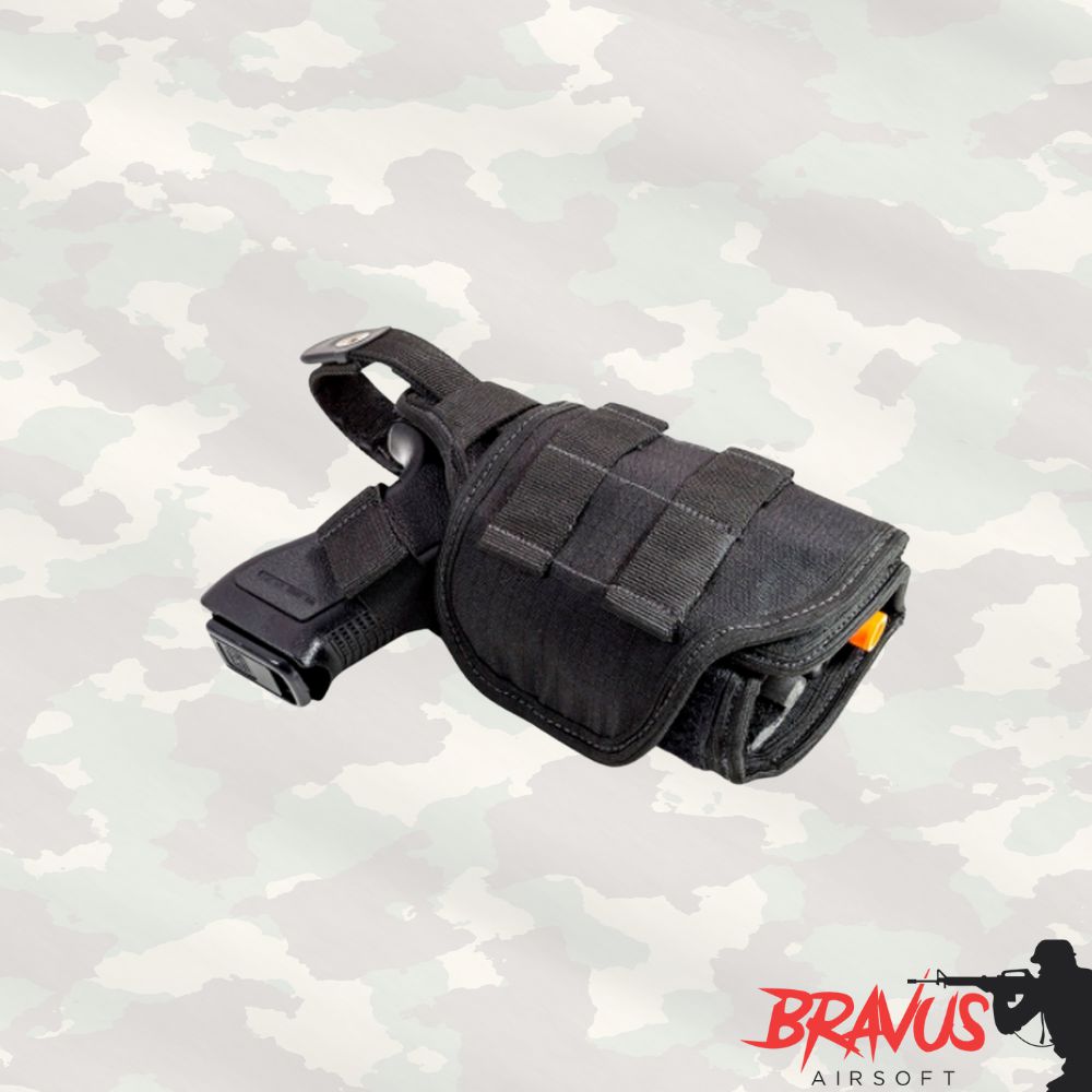 - Sistema modular (M.O.L.L.E.) para ser acoplado em coletes, plataformas de perna, cinto e etc.