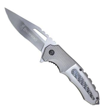 Canivete Browning Escamas TB-1712 com lâmina em aço reforçado, corte afiado, cabo em alumínio, trava de segurança com abertura manual. Perfeito para quem curte canivete de alta qualidade.