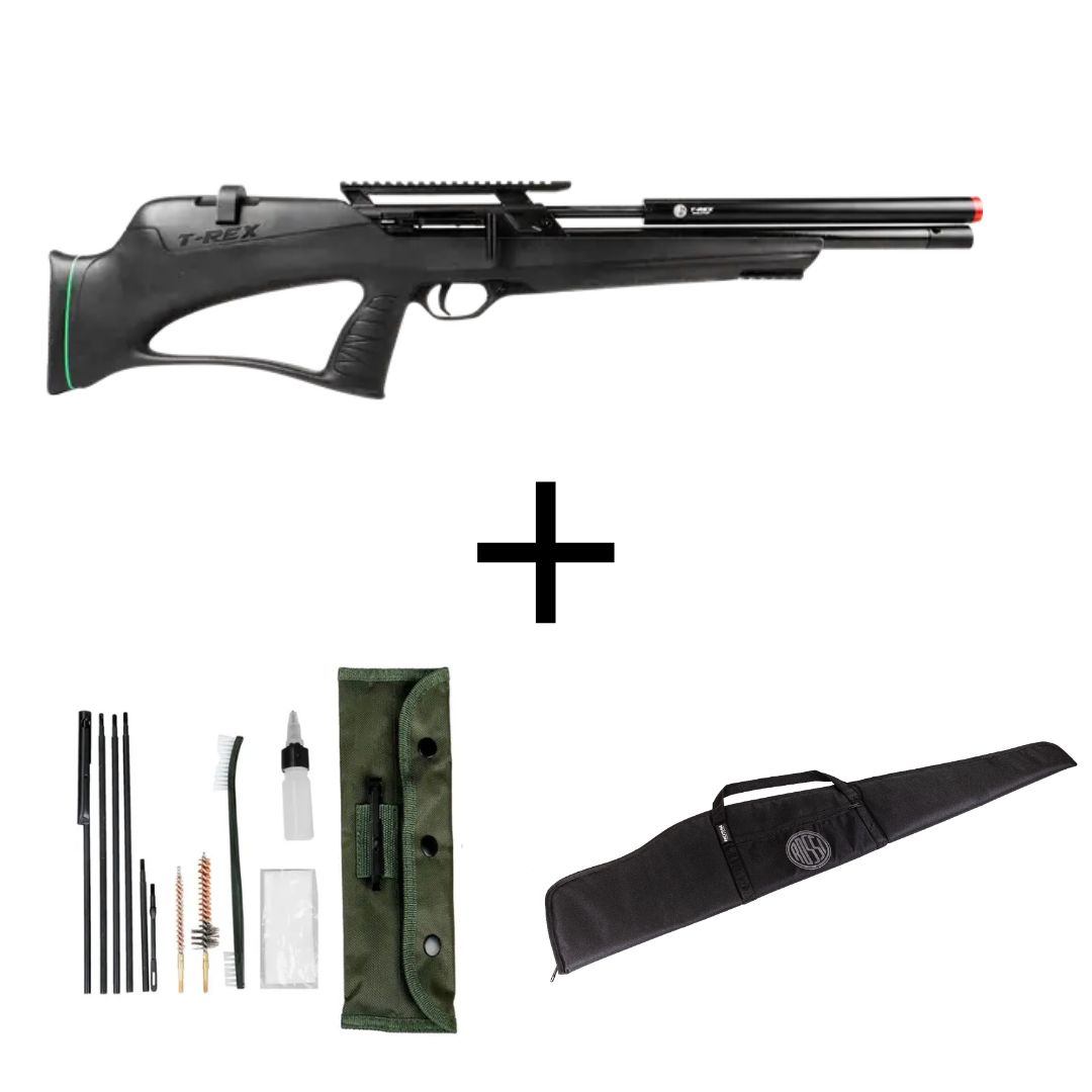 Com uma pressão máxima de trabalho de 250 bar e um reservatório de 150 cc, a carabina garante autonomia de até 60 disparos por carregamento. O manômetro integrado auxilia no monitoramento da pressão, enquanto a válvula reguladora de pressão contribui para um desempenho consistente. A carabina Rossi T-Rex Bullpup é uma excelente escolha para quem busca alta performance e confiabilidade em uma carabina de pressão PCP.