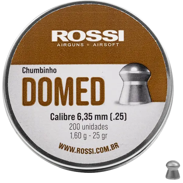 O Chumbinho Rossi Domed 6,35 mm é ideal para quem busca impacto e penetração com regularidade. Com ponta arredondada e peso elevado, garante excelente desempenho em carabinas de maior potência, oferecendo agrupamentos consistentes.