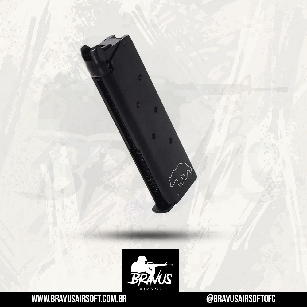 O Magazine Airsoft para Pistolas R28 tem capacidade para até 24 BBs. É compatível com Pistola Airsoft Ar-36 1911 R27 R28 R29 EArmy Armament. Construído em metal e pesando 190g.