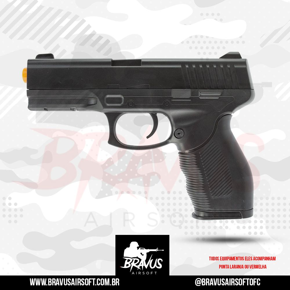 Esse modelo conta com um magazine confeccionado em polímero que comporta 12 esferas BBs do calibre 6 mm. Essa pistola não possui trava de segurança no “slide” e nem trava de gatilho.